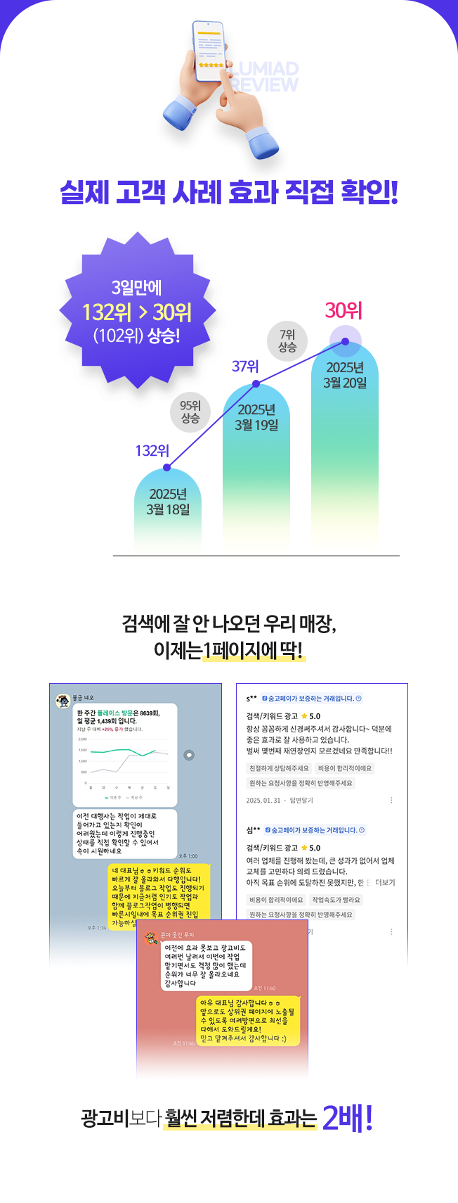 검색 상위 노출을 통해 더 많은 고객과 매출 상승을 경험하세요.